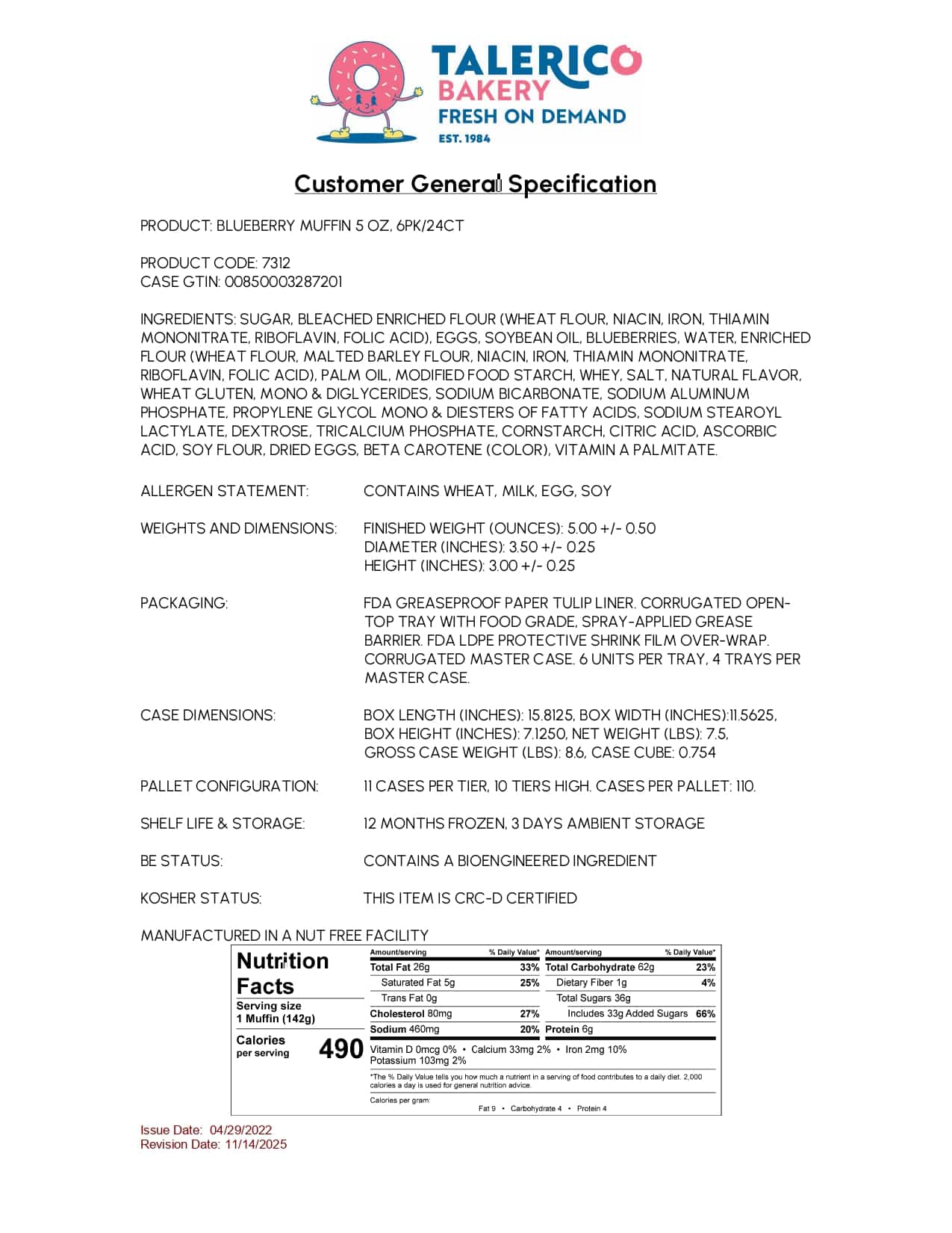 SUGAR, BLEACHED ENRICHED FLOUR (WHEAT FLOUR, NIACIN, IRON, THIAMIN MONONITRATE, RIBOFLAVIN, FOLIC ACID), EGGS, SOYBEAN OIL, BLUEBERRIES, WATER, ENRICHED FLOUR (WHEAT FLOUR, MALTED BARLEY FLOUR, NIACIN, IRON, THIAMIN MONONITRATE, RIBOFLAVIN, FOLIC ACID), PALM OIL, MODIFIED FOOD STARCH, WHEY, SALT, NATURAL FLAVOR, WHEAT GLUTEN, MONO & DIGLYCERIDES, SODIUM BICARBONATE, SODIUM ALUMINUM PHOSPHATE, PROPYLENE GLYCOL MONO & DIESTERS OF FATTY ACIDS, SODIUM STEAROYL LACTYLATE, DEXTROSE, TRICALCIUM PHOSPHATE, CORNSTARCH, CITRIC ACID, ASCORBIC ACID, SOY FLOUR, DRIED EGGS, BETA CAROTENE (COLOR), VITAMIN A PALMITATE. -
