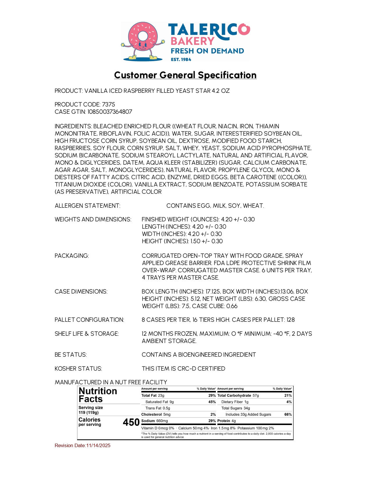 BLEACHED ENRICHED FLOUR (WHEAT FLOUR, NIACIN, IRON, THIAMIN MONONITRATE, RIBOFLAVIN, FOLIC ACID), WATER, SUGAR, INTERESTERIFIED SOYBEAN OIL, HIGH FRUCTOSE CORN SYRUP, SOYBEAN OIL, DEXTROSE, MODIFIED FOOD STARCH, RASPBERRIES, SOY FLOUR, CORN SYRUP, SALT, WHEY, YEAST, SODIUM ACID PYROPHOSPHATE, SODIUM BICARBONATE, SODIUM STEAROYL LACTYLATE, NATURAL AND ARTIFICIAL FLAVOR, MONO & DIGLYCERIDES, DATEM, AQUA KLEER (STABILIZER) (SUGAR, CALCIUM CARBONATE, AGAR, SALT, MONOGLYCERIDES), NATURAL FLAVOR, PROPYLENE GLYCOL MONO & DIESTERS OF FATTY ACIDS, CITRIC ACID, ENZYME, DRIED EGGS, BETA CAROTENE (COLOR)), TITANIUM DIOXIDE (COLOR), VANILLA EXTRACT, SODIUM BENZOATE, POTASSIUM SORBATE (AS PRESERVATIVE), ARTIFICIAL COLOR -