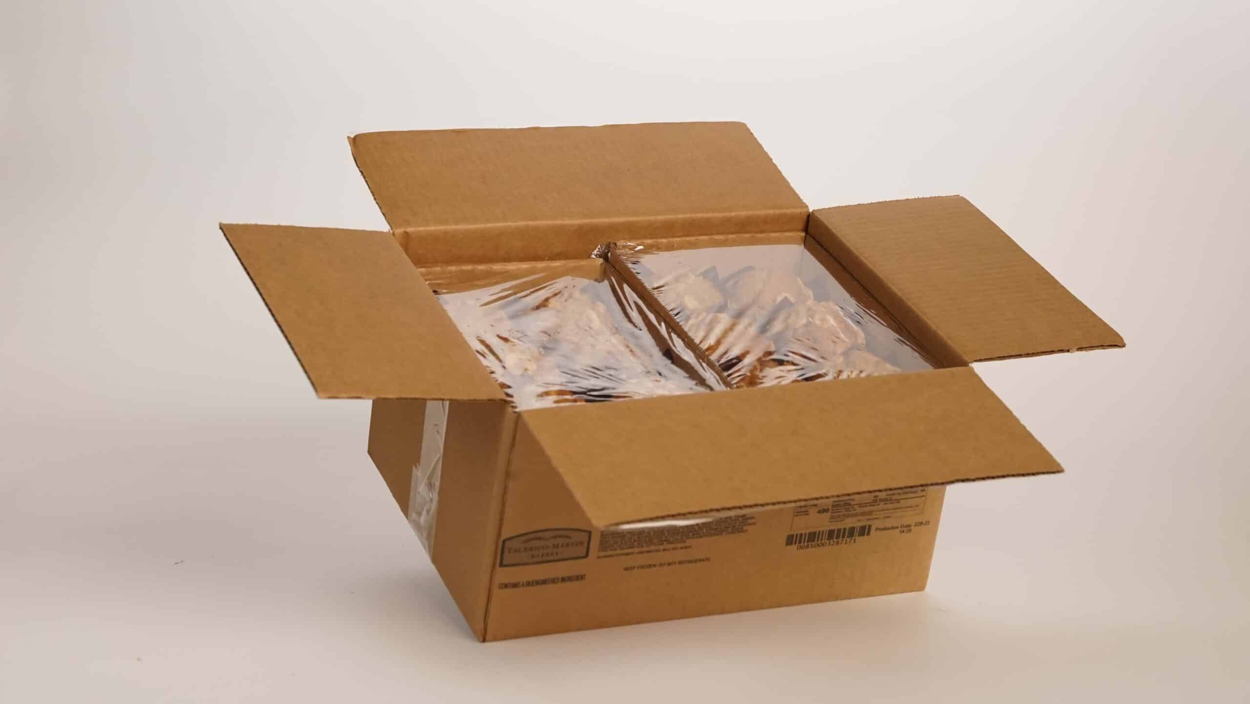 INDIVIDUALLY WRAPPED IN PPE FILM. CORRUGATED OPEN-TOP TRAY WITH FOOD GRADE, SPRAY-APPLIED GREASE BARRIER. FDA LDPE PROTECTIVE SHRINK FILM OVER-WRAP. CORRUGATED MASTER CASE. 8 UNITS PER TRAY, 4 TRAYS PER MASTER CASE. -