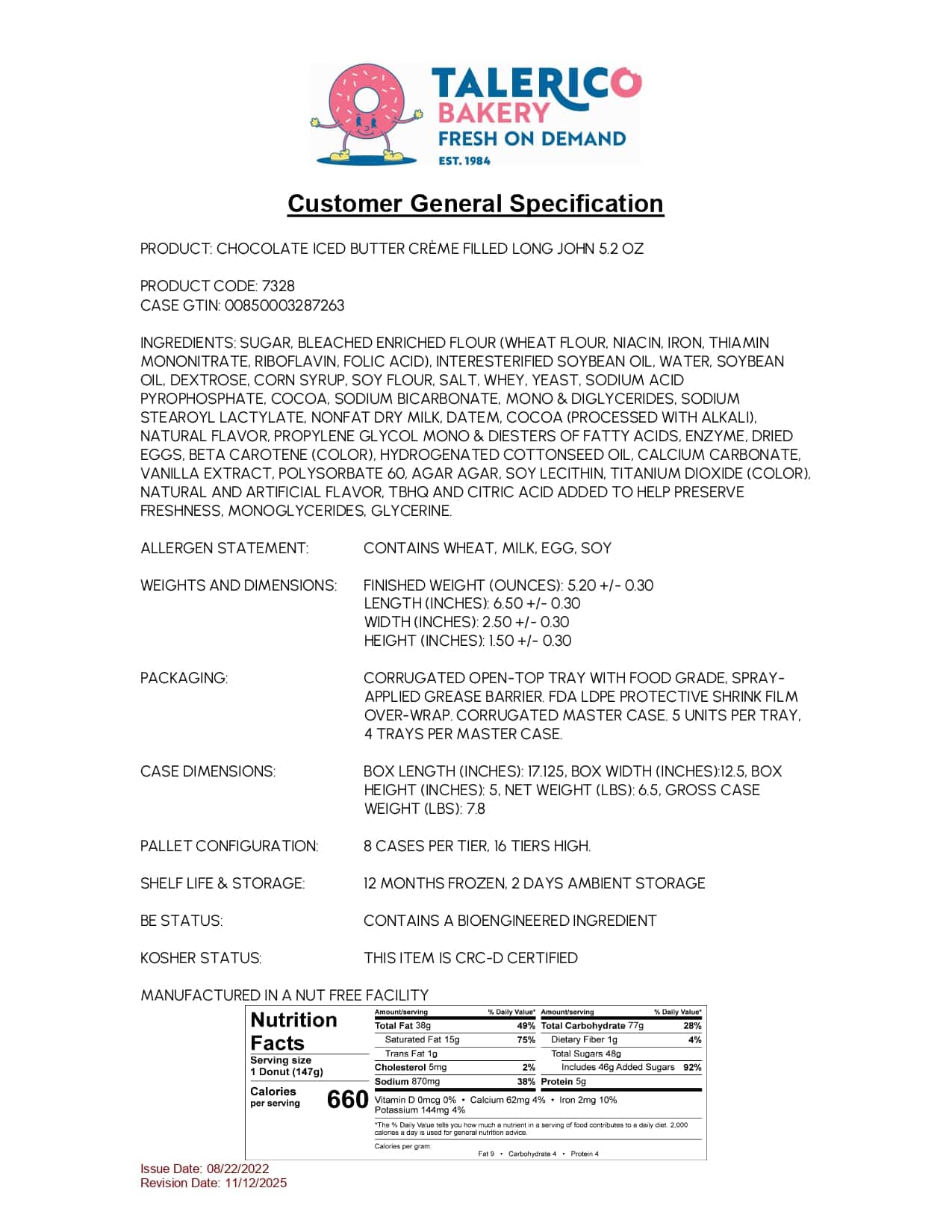 Chocolate Iced Butter Crème Filled Yeast Raised Long John